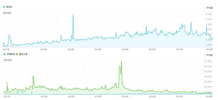 Baidu Index comparison between Universal and Hollywood Walk of Fame