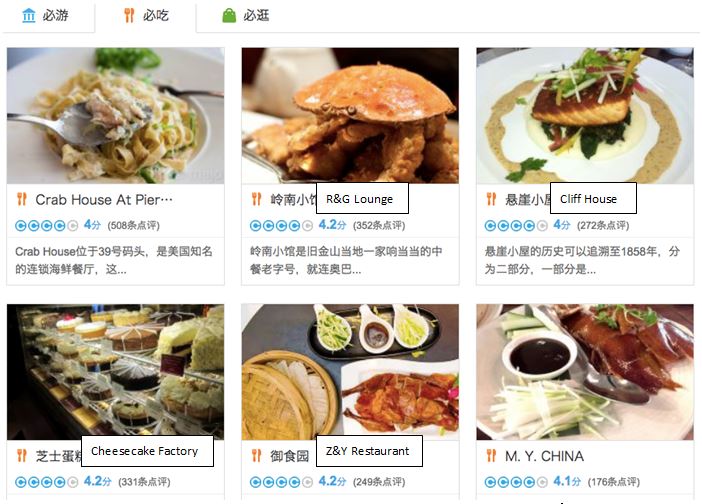 In C-trip, the Golden Gate Bridge is listed as #1 popular destination in San Francisco. It is the must go place because Chinese travelers believe it represents San Francisco. Other than that, Chinese travelers enjoyed the city view and sea view while standing on the mountain next to the end of the bridge.