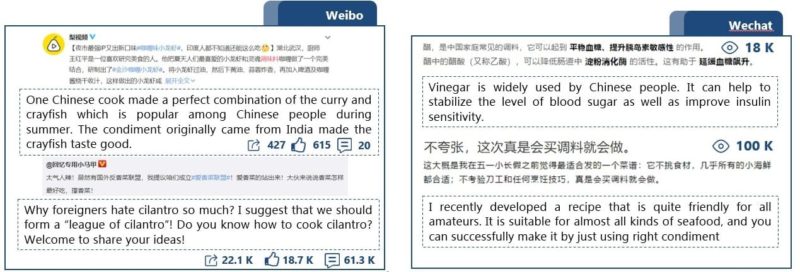 For international brands, KOLs are a huge part of modern condiment and sauce promotions, and young consumers are influenced by KOL’s shared opinions and experiences. China’s KOLs, who usually post content related to condiment and sauce on Weibo, mostly are food KOLs. Foodvideo, is a KOL account on Weibo mainly posts video about cooking process and methods and it has over 4.4 million followers. Some KOLs focus on food recommendations, products testing and recipe sharing. Condiment and are frequently mention in those, and they are always important in every post.