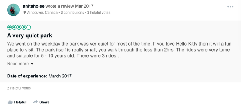 [Source, TripAdvisor, ‘reviews of the Hello Kitty theme park in China’]