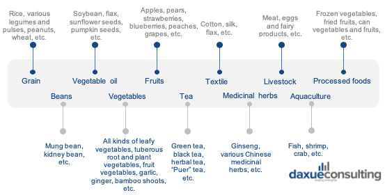 Due to vast cultivation areas and various climates, diverse organic food can be grown in China. The main organic products exported are processed vegetables, soybeans, honey, grains, green tea, herbal medicines and beans, which are mostly raw and semi-processed.