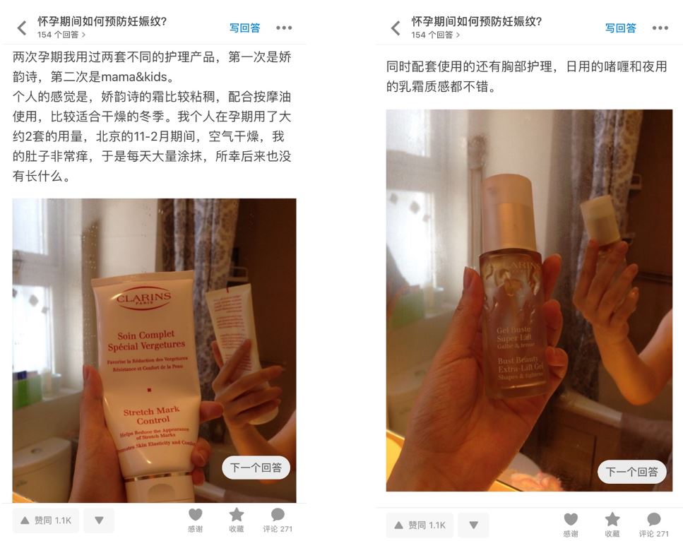 Although Clarins is selling a wide range of skin care products, because of its clear and trustworthy brand image, Clarins’ product is famous for its safety and effectiveness. Its pregnancy care product like stretch-mark-reducing lotion is especially popular on the Chinese market. On China’s first and biggest Q&A platform Zhihu, when coming to questions like “How to prevent stretch marks?” Products from Clarins are being mentioned frequently.
