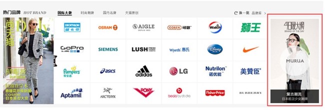 This list can be found immediately below the rotating banners on the homepage of Tmall local. This list basically changes on a day to day basis, as the name implies. The left side banner is almost exclusively dedicated for fashion brands, but the right side banner is up for grabs for any brand type. The first tab lists out international brands, followed by fashion brands, and finally we can find TMall originals (brands that started from scratch on the TMall platforms).