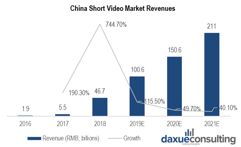 [Data Source: Statista, 2018, China’s short video advertising market revenue]